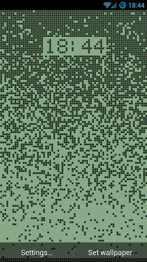 LCD Live Wallpaper shows an LCD clock surrounded by falling blocks (default theme). You can change between 3 different themes and choose the colors as you like. There are numerous preset color combinations wich is great if you don't mind to find the colors by yourself. To increase the geek factor you can even use a binary clock!